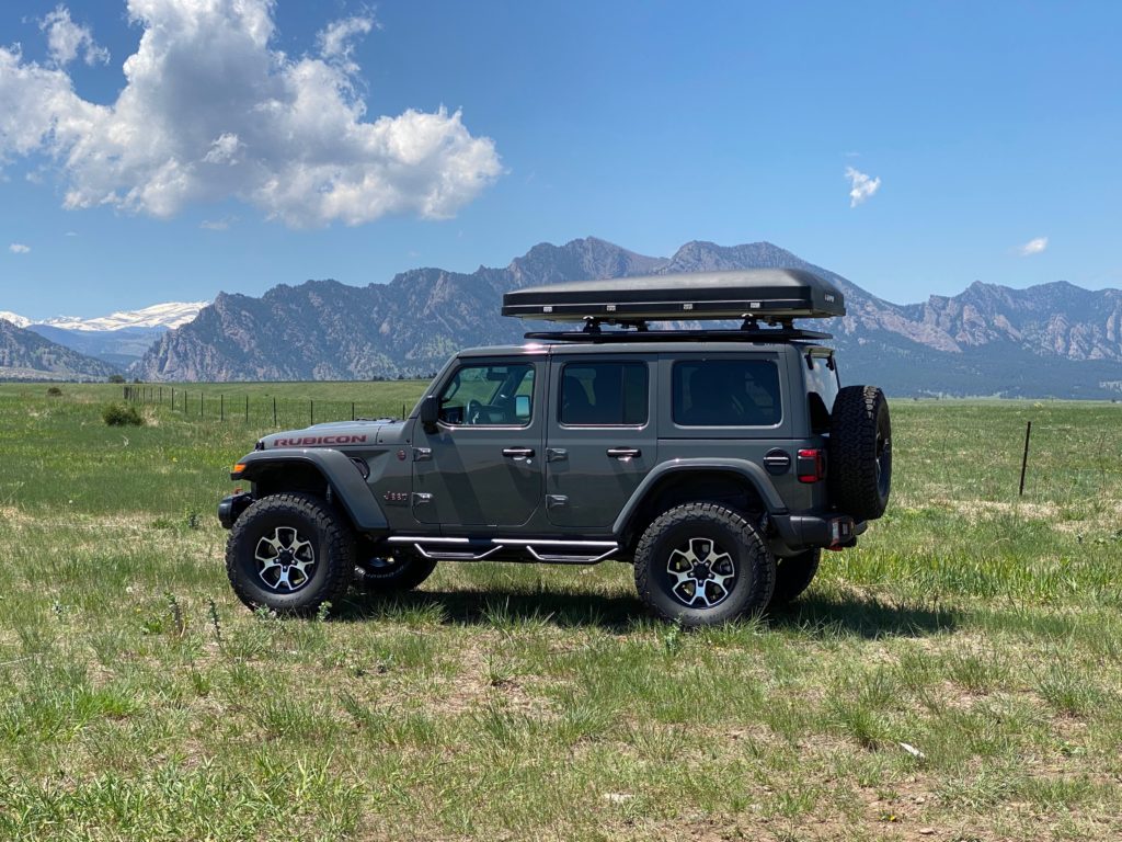 Jeep Wrangler Rubicon overland rental in Colorado — our most popular adventure rig, combining rugged capability with spacious comfort. Outfitted with a Mopar 2″ lift kit, Fox shocks, 37″ tires and AEV wheels, this Jeep is built to conquer Colorado’s diverse landscapes. The full-size iKamper SkyCamp 3.0 rooftop tent comfortably sleeps up to 4, making it ideal for families or groups. With a fully equipped camp kitchen, including a dual-burner stove, electric fridge/freezer, and all necessary cookware, you’re ready for an unforgettable off-grid experience.